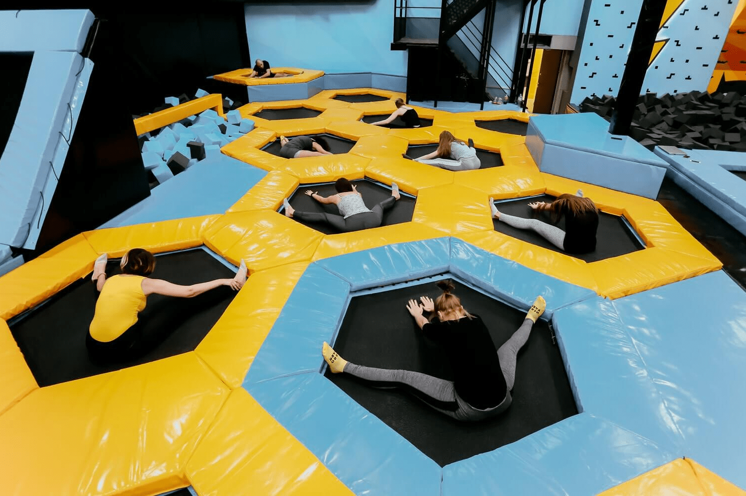 Несмотря на то, что тренировки на батуте могут показаться детским развлечением, это полноценный фитнес для взрослых, и нагрузки тут весьма серьезные! Они гораздо больше, чем при обычных занятиях бегом, и хороши тем, что сочетают в себе сразу несколько видов тренировок — кардио, аэробные и силовые нагрузки. Вы станете более выносливы, скоординированны и подтянуты!