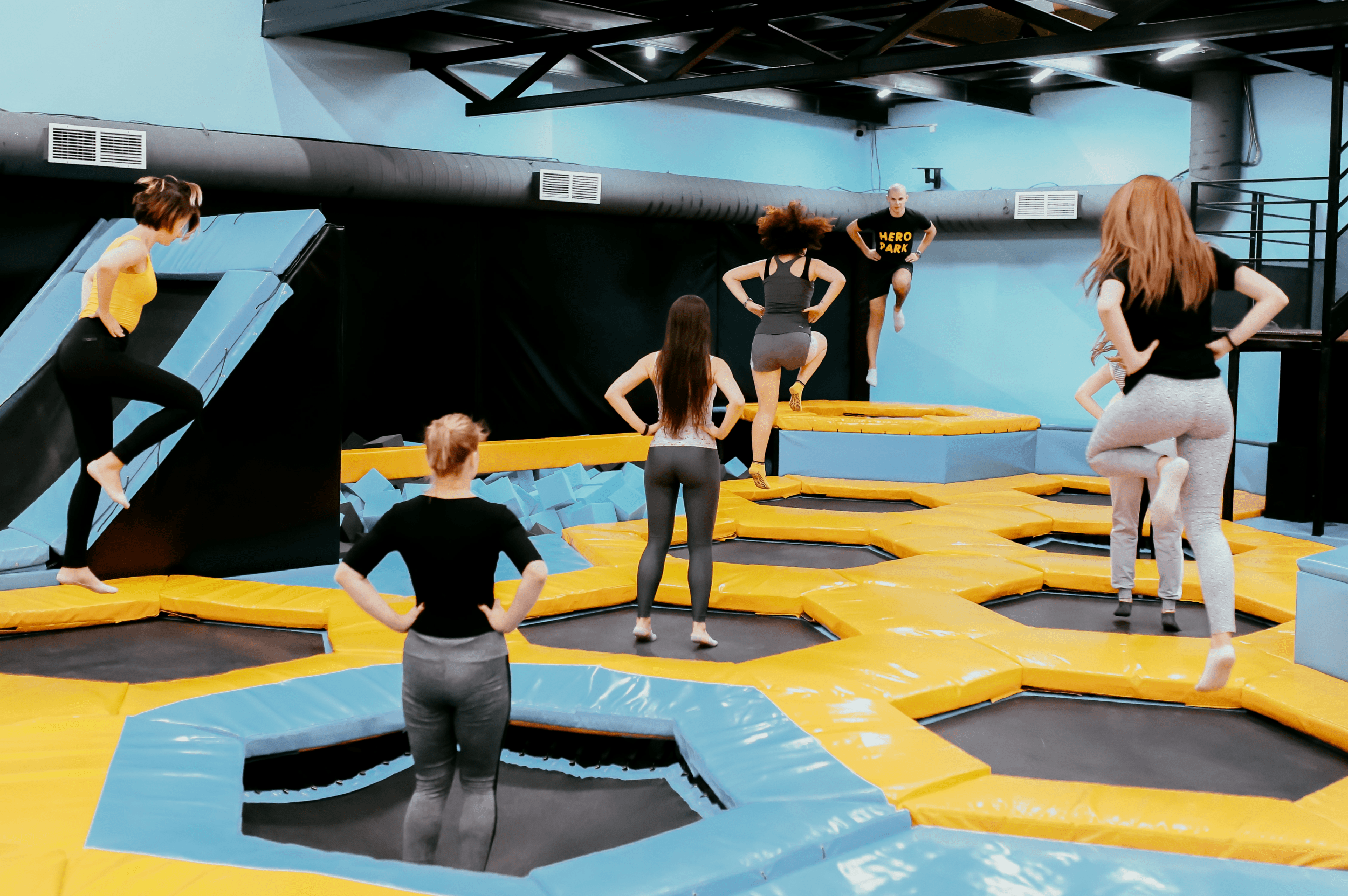 Занятия по фитнесу на батутах в батутных центрах «Hero Park» проводятся под руководством опытных тренеров, который правильно рассчитает нагрузку таким образом, чтобы она была оптимальной для людей разной комплекции, физических возможностей и степени тренированности. Просто прыгая на батуте под динамичную музыку и выполняя указания тренера, вы сможете научиться вновь чувствовать свое тело и управлять им.