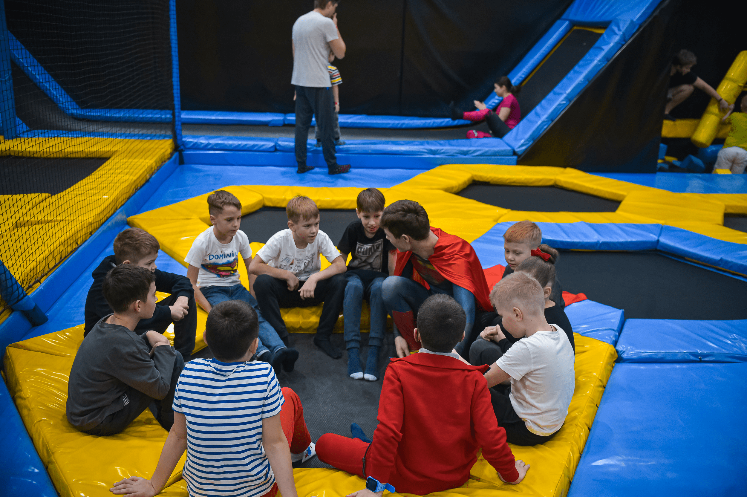 Пока друзья, коллеги, дети прыгают и падают, проводите время в специальной комнате со столиками и диванами, вас ждет бар с напитками и просторная терраса, с которой можно увидеть все, что происходит в Hero Park. В удобной комнате с диванчиками вы можете перекусить тортом и заесть его пиццей.