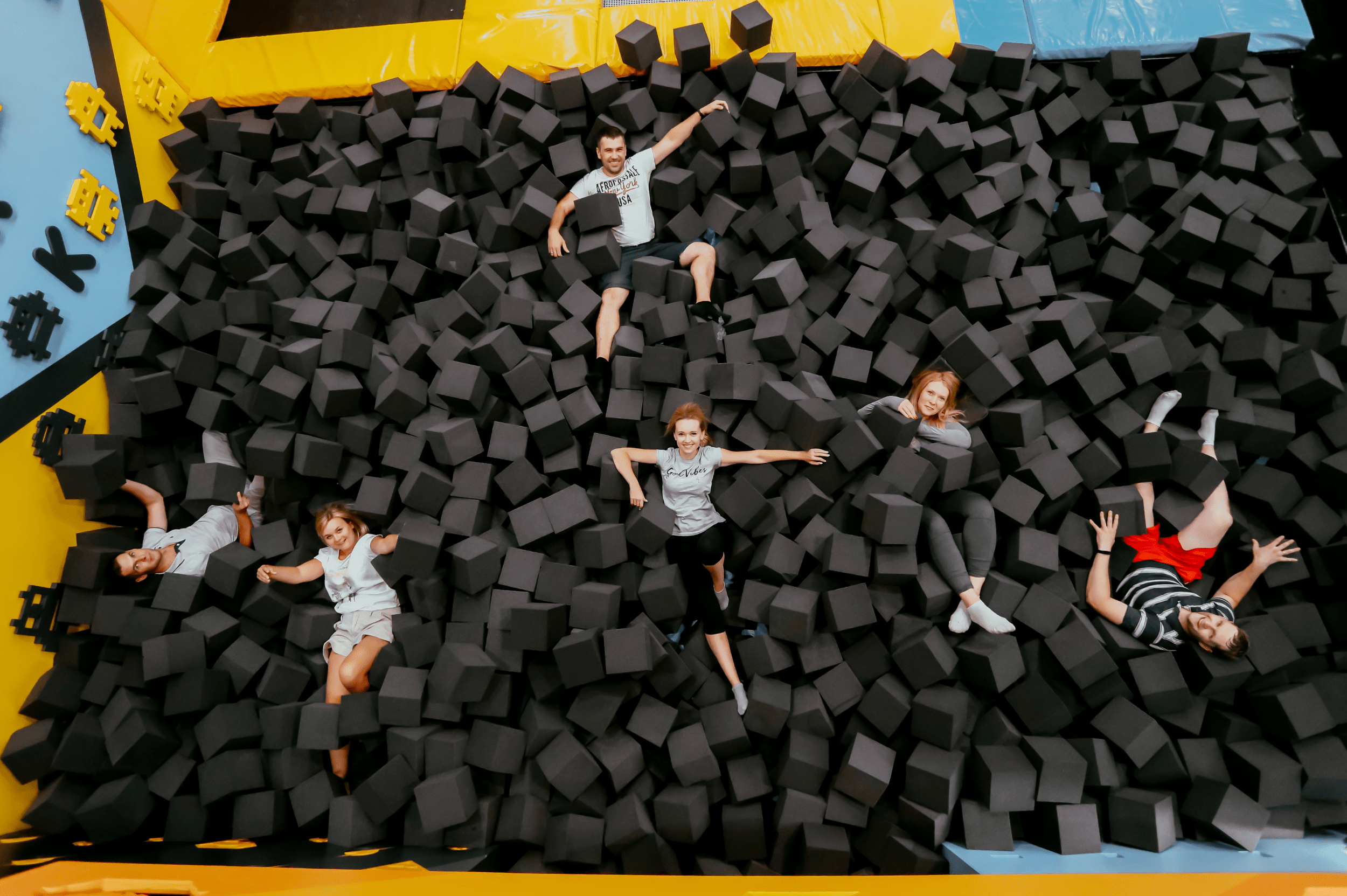 В поролоновой яме можно устроить веселые «заплывы» наперегонки и мягкие бои, строить крепости или окопы, закапываться самим и закапывать друг друга.