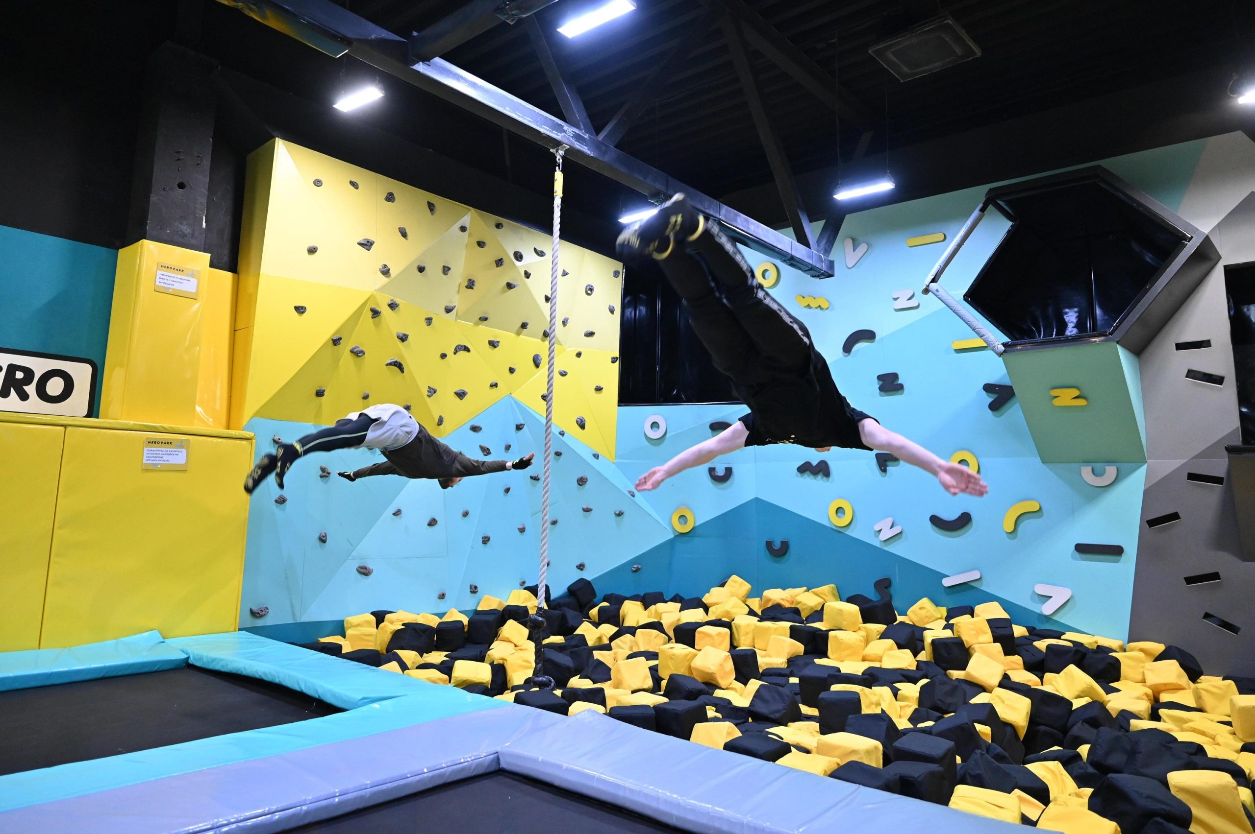Батутный центр Hero Park, оснащенный большой и безопасной поролоновой ямой, приглашает ребят – детей и подростков — оценить преимущества мягкой ямы и весело провести время в выходные дни или во время детских каникул. В поролоновой яме можно устроить веселые «заплывы» наперегонки и мягкие бои, строить крепости или окопы, закапываться самим и закапывать друг друга. Мягкие кубики обезопасят тренирующихся в выполнении прыжков и сальто — падать будет не страшно и не больно, потому что поролоновая яма наполнена большим количеством мягких кубиков.